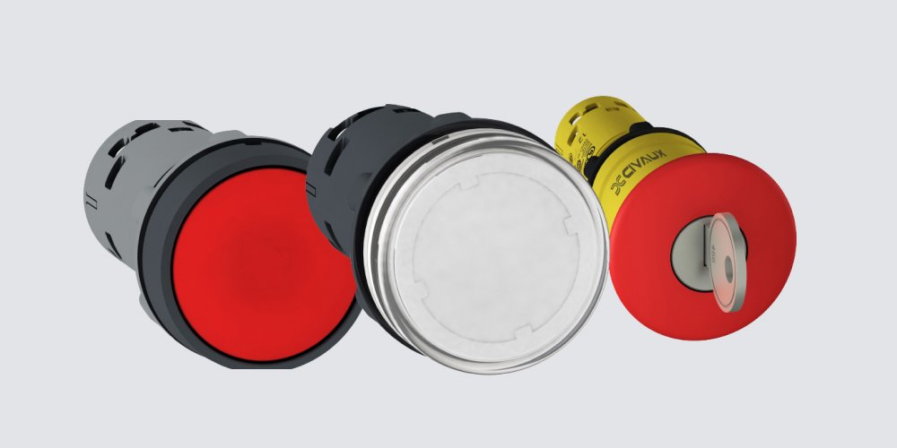 Civaux CX9 range of plastic Roundhead control and signaling units are designed for Start/Stop control of machines and installations with choice of colors.